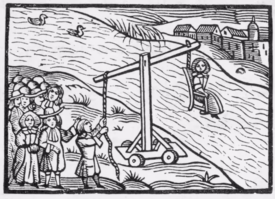 A ducking stool used to stand by the river and this was where people, mostly women, were accused of witchcraft and plunged into the river Avon. If they drowned? Innocent. If they floated and survived? Guilty.