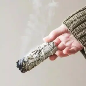This comes from indigenous and shamanic traditions: you take a bundle of dried sage (called a smudge stick), light the end until it smoulders, and let the purifying smoke waft through every room, especially corners and dark areas.